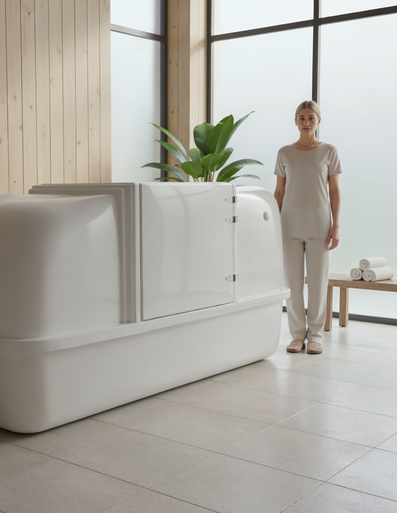 The Restingwell Spirit Float Tank is one of very few tanks on the market that allows clients to walk directly into the float area, without having to crawl in or out of the tank.